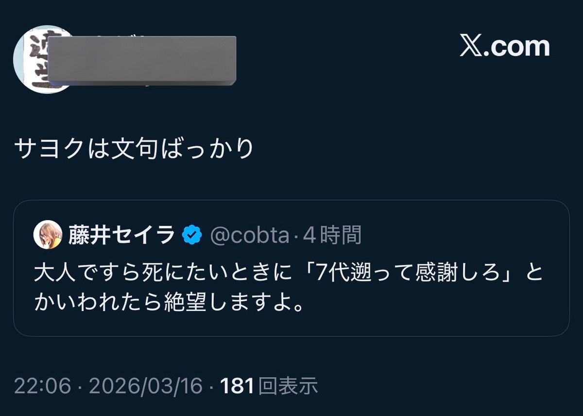 え?希死念慮がある?死にたい?まず7代までの250人超の祖先に感謝が足りないんじゃないですか?感謝が。 #今日の祖先に感謝すれば死にたいなんて文が鮮明に思うはずがない 「政府の「子どもの自殺対策」が「先祖に感謝」だったら文句いいたくなりますよ。」