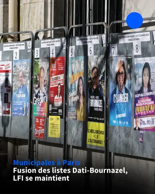 Municipales à Paris: le candidat Horizons/Renaissance Pierre-Yves Bournazel a annoncé lundi une fusion de listes avec Rachida Dati (LR) pour le 2nd tour. Sophia Chikirou (LFI) a annoncé son maintien au 2nd tour après le "refus"d'Emmanuel Grégoire (PS) de sa proposition de fusion.