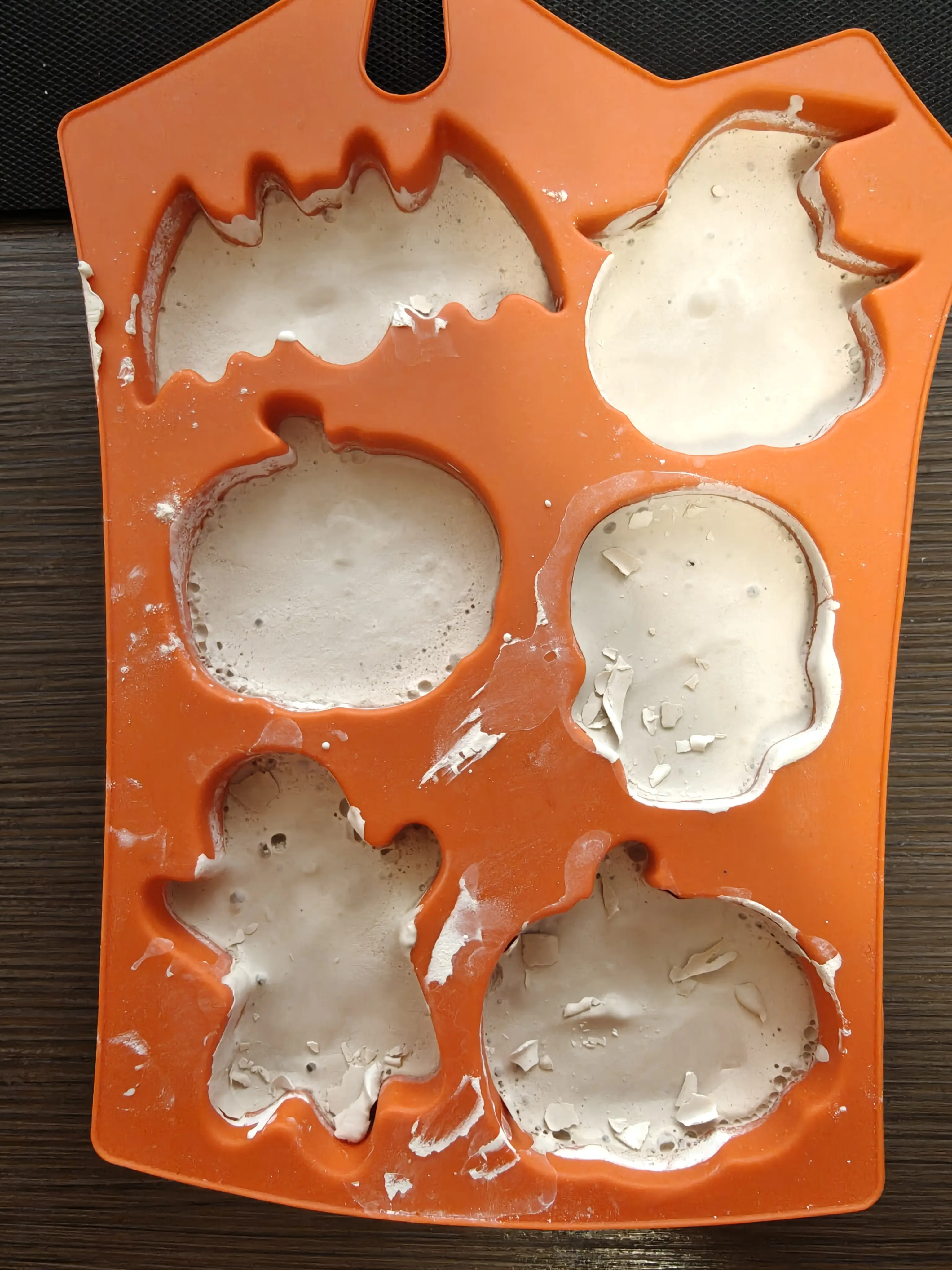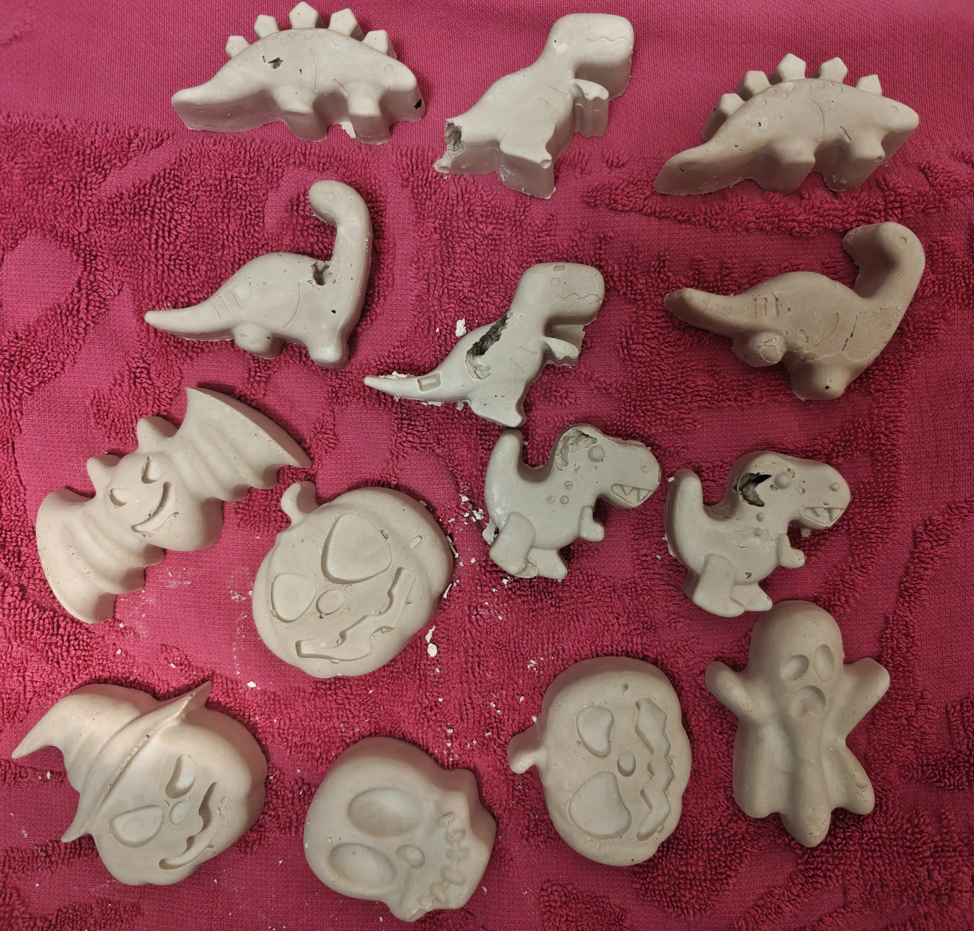The dinosaur batch was my first, I mixed it in place and that didn't turn out that well, but then I premixed the plaster and poured it into the Halloween molds and those turned out great. 📝 f637d293…