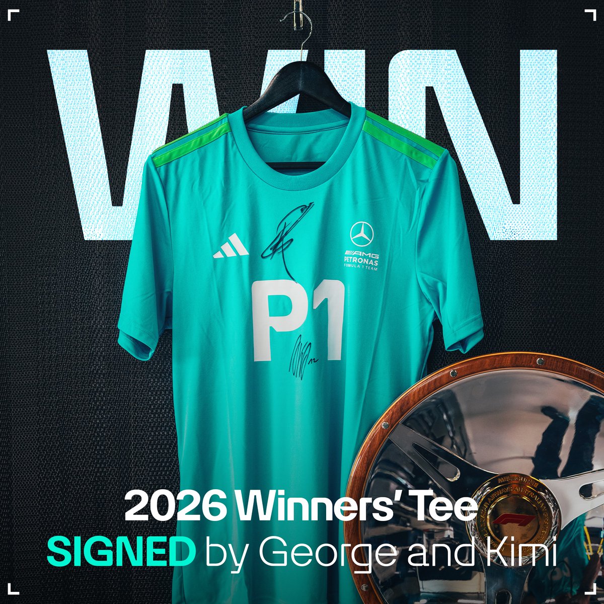 Want to get your hands on a 2026 winners' tee, signed by both Kimi and George? ✍️